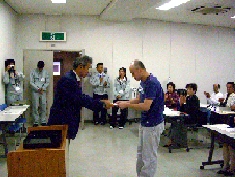 今年度新任の体育指導委員に町野体育課長から委嘱状の交付がありました